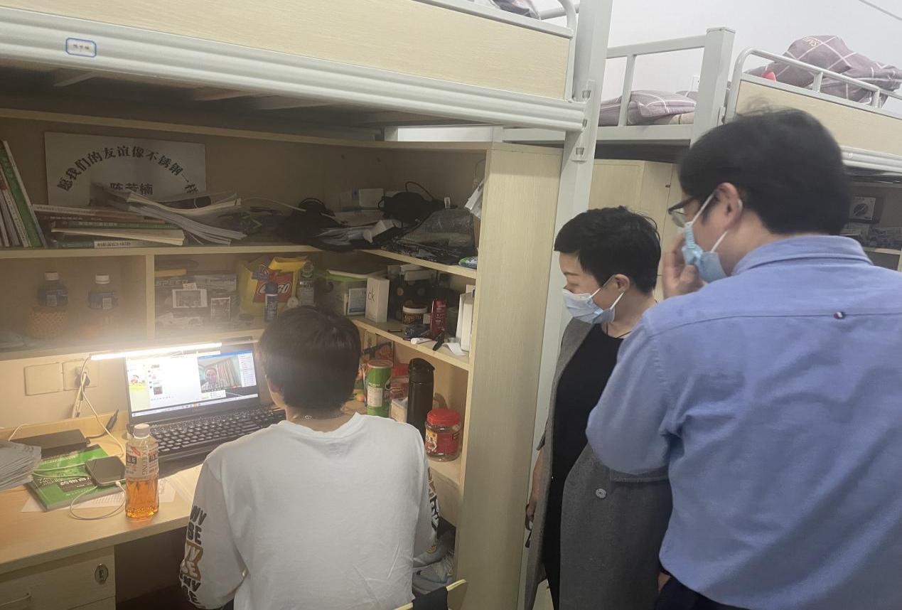 在18号楼学生宿舍,刘翔炜了解学生网课情况,在与学生的交谈中,他鼓励同学们要认真探究专业课程,熟练掌握知识与技能,提升个人价值。同时,他还强调同学们要积极配合学校疫情防控,做到劳逸结合。