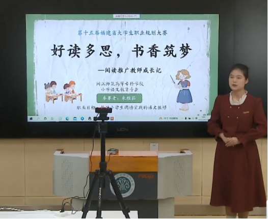 选手们结合自身实际、行业前景以及所学专业知识,在现场展示与答辩环节阐述了自身职业生涯的目标,勾勒出自我发展路径和职业蓝图。由董秋锋老师指导的应用外语(马来语方向)专业陈婷同学的参赛作品《“马”不停蹄,“莆”鞋来袭——以跨境电商为媒,让世界爱上莆田创造》脱颖而出,以第1名的成绩荣获高职组一等奖;由吴文洁老师指导的小学语文教育专业朱雅茹同学的参赛作品《好读多思,书香筑梦——阅读推广教师成长记》荣获高职组二等奖。