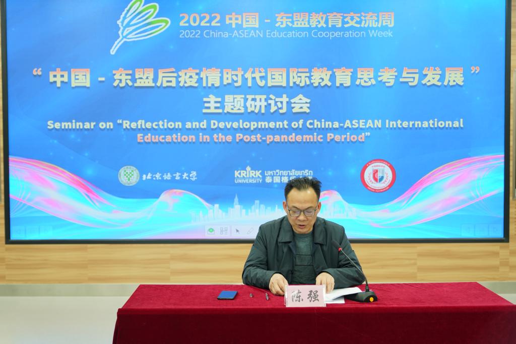 2022年12月3-4日,我校作为协办单位参加了中国-东盟教育交流周“后疫情时代国际教育思考与发展”主题研讨会。此次研讨会在中国教育国际交流协会、中国东盟国际教育协会等单位的指导下,由北京语言大学、泰国格乐大学、泰国-中国国际学校三校联合主办,通过线上+线下同步直播模式进行。副校长陈强受邀出席研讨会,并作了以《助力海外华文教育,搭建中华文化传播桥梁》为主题的发言。