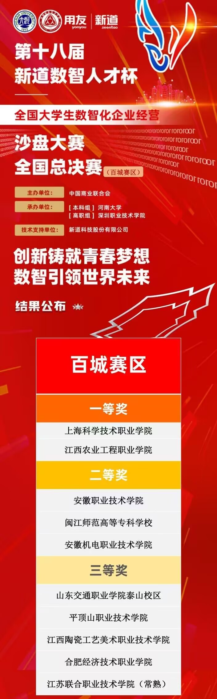 此次大赛共分为百城选拔赛与全国总决赛两个阶段。在前期的百城选拔赛中,人文与管理学院参赛队伍在高职组84支团队中,以第四名的成绩成功出线,入围全国总决赛,与来自全国各省的80所高校同台竞技。全国总决赛赛场上,参赛队员沉着冷静、谨慎谋划,展现出了娴熟精湛的实践技能和团结协作的团队风采,最终荣获全国总决赛二等奖的好成绩。