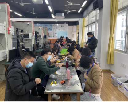 首届教师专业技能(操作能力)考核开考了16个项目。智能制造学院考核绘制零件图、斜面搬运手动示教编程、发动机正时齿形带的拆装、电路图完成电路接线等4项目,化学与生物工程学院考核EDTA标准滴定溶液的标定、药用葡萄糖中氯化物的检查方法、检测牛乳中酸度3个项目,数字信息学院考核专业群通用技能、专业核心技能两大类项目,涵盖组网技能前端开发技能、数据库应用技能以及软件技术、物联网应用技术、大数据技术、数字媒体技术、现代教育技术、信息安全技术应用专业核心技能共9个模块项目。一共50名专业教师参加了考核并均取得了优良成绩。