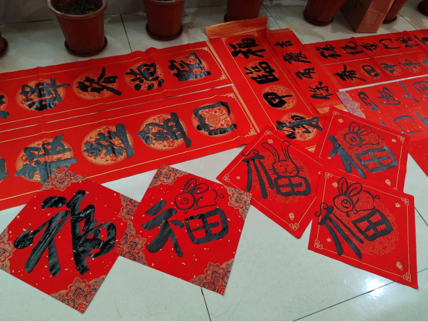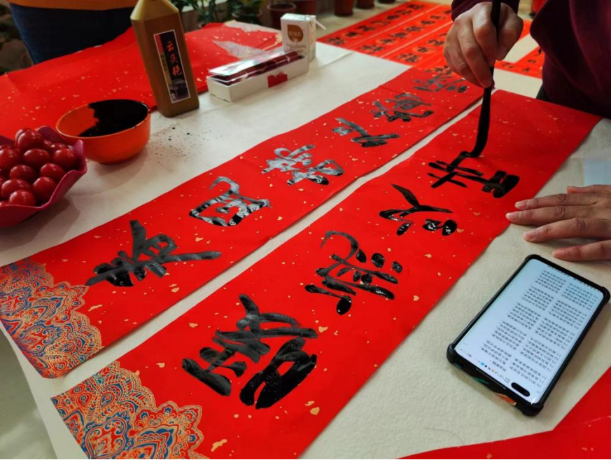 “红红火火添喜庆,驱走疫情挥阴霾”。六位书法老师凭笔寄意、以字传情,一个个苍劲、灵动的书法字体跃然纸上,一幅幅承载着新年祝愿的春联在方寸条幅之间传递着温暖和关怀,对党的二十大与美好生活的礼赞融入春联中,喜庆的春联映红了校园,营造出欢乐祥和的节日氛围。