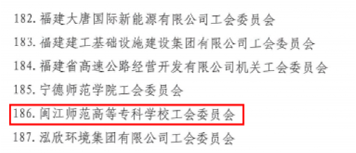 近日,福建省总工会下发《福建省总工会关于表彰福建省模范职工之家、福建省模范职工小家的决定》(闽工〔2023〕7号),闽江师范高等专科学校工会委员会荣获“福建省模范职工之家”称号。