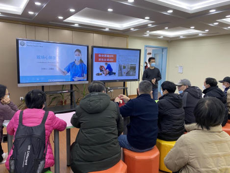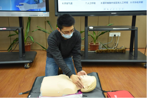 医护学院教师王振龙为大家讲解心肺复苏知识,现场模拟教学