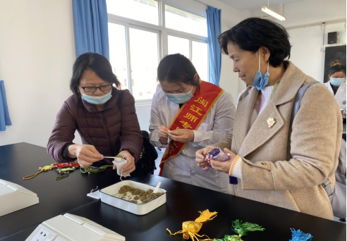 在学生志愿者的指导下,大家亲手制作中药香囊