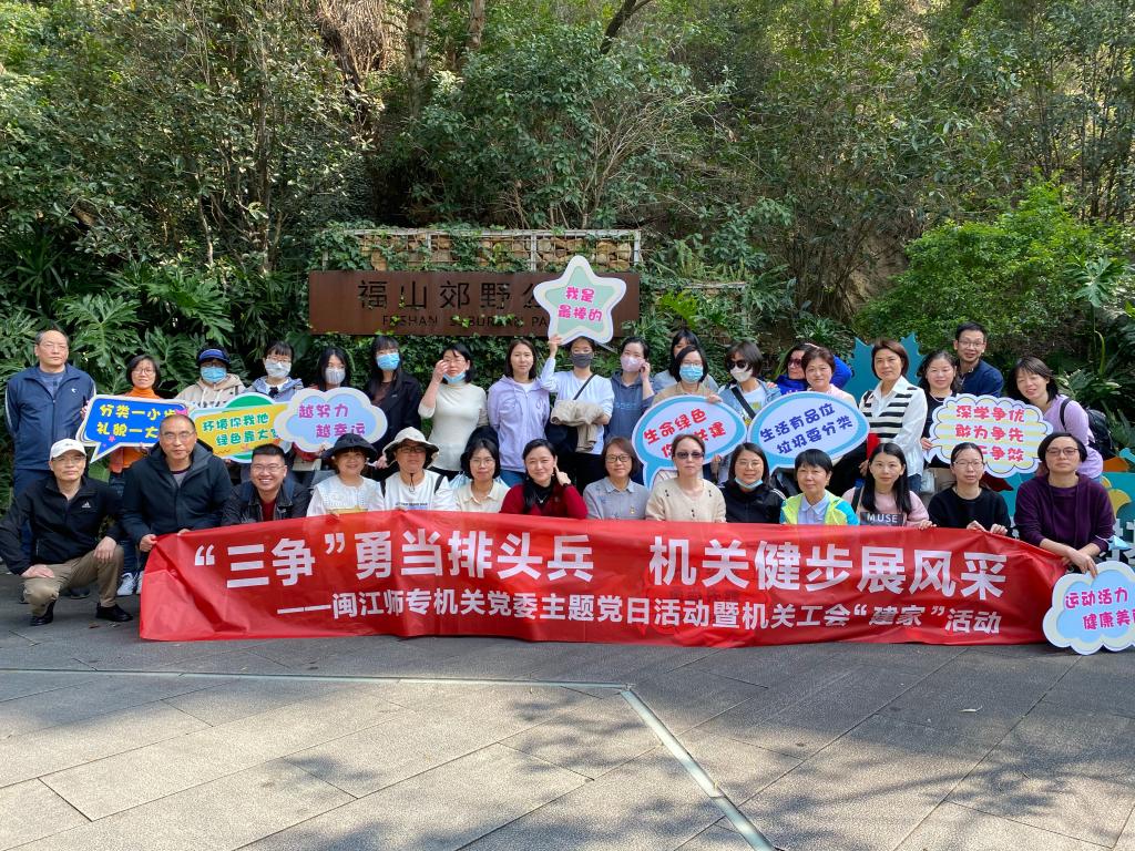 正是一年春好处,绝胜好景望榕城。3月8日下午,为深入贯彻党的二十大精神,践行省委、市委和学校党委“深学争优,敢为争先,实干争效”行动部署,在习近平总书记来闽考察两周年到来之际,机关党委联合机关工会、女工委在福山郊野公园开展“敢打头阵,勇当先锋,争做标杆”主题党日活动暨机关工会“建家”活动,展现机关教职工朝气蓬勃、昂扬向上的精神风貌。