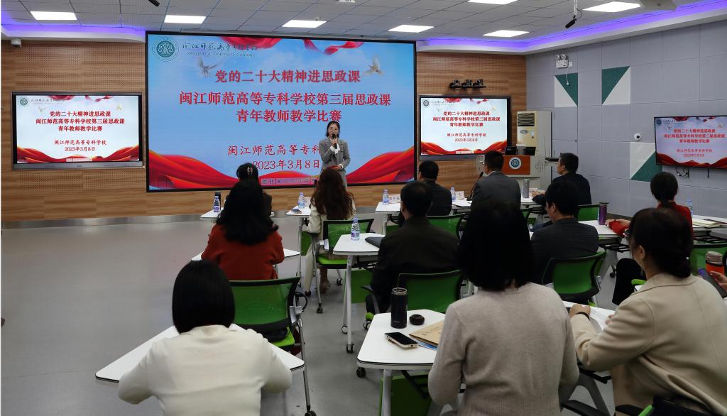 3月8日上午,“党的二十大精神进思政课”——我校第三届思政课青年教师教学比赛在旗山校区3016教室举行。经过前期个人报名、教研室选拔推荐,本次比赛共有9名选手参加。校长杨建义教授莅临现场全程观摩、指导。马克思主义学院全体思政课教师到场观看比赛。福建信息职业技术学院马克思主义学院院长黄冬福教授,福建师范大学马克思主义学院杨晶副教授,闽江学院马克思主义学院陈东副教授,校教学督导、福建师范大学蔡旭群副教授,马克思主义学院副院长林志香副教授担任本次比赛的评委。
