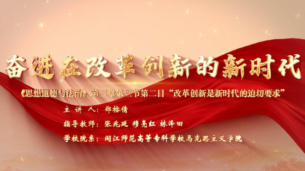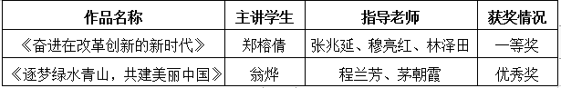 近日,由教育部高校思政课教学指导委员会主办的“领航计划”第六届全国大学生讲思政课公开课活动获奖名单公示出炉,我校马克思主义学院报送作品《奋进在改革创新的新时代》荣获高职组全国一等奖,《逐梦绿水青山 共建美丽中国》获高职组优秀奖。其中由张兆延、穆亮红、林泽田老师指导的《奋进在改革创新的新时代》作品为我校在此类比赛中所获的最高奖项。