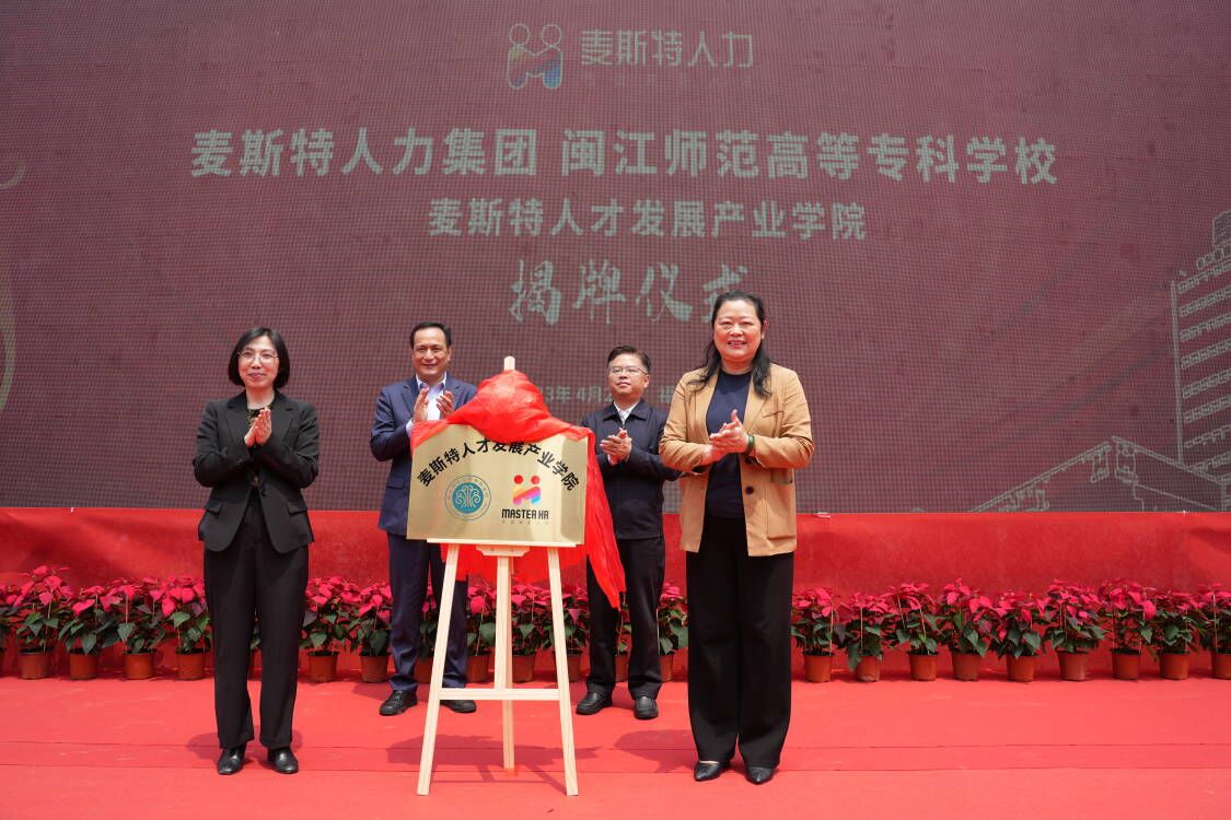 4月23日,学校与麦斯特人力资源有限公司举办麦斯特人才发展产业学院揭牌仪式。学校党委副书记林旻、麦斯特人力集团总经理林琴为“麦斯特人才发展产业学院”揭牌,福建省人社厅副厅长童长峰、福州人社局党组书记王命瑞,闽江师专人文与管理学院院长陈勤等参加本次仪式。