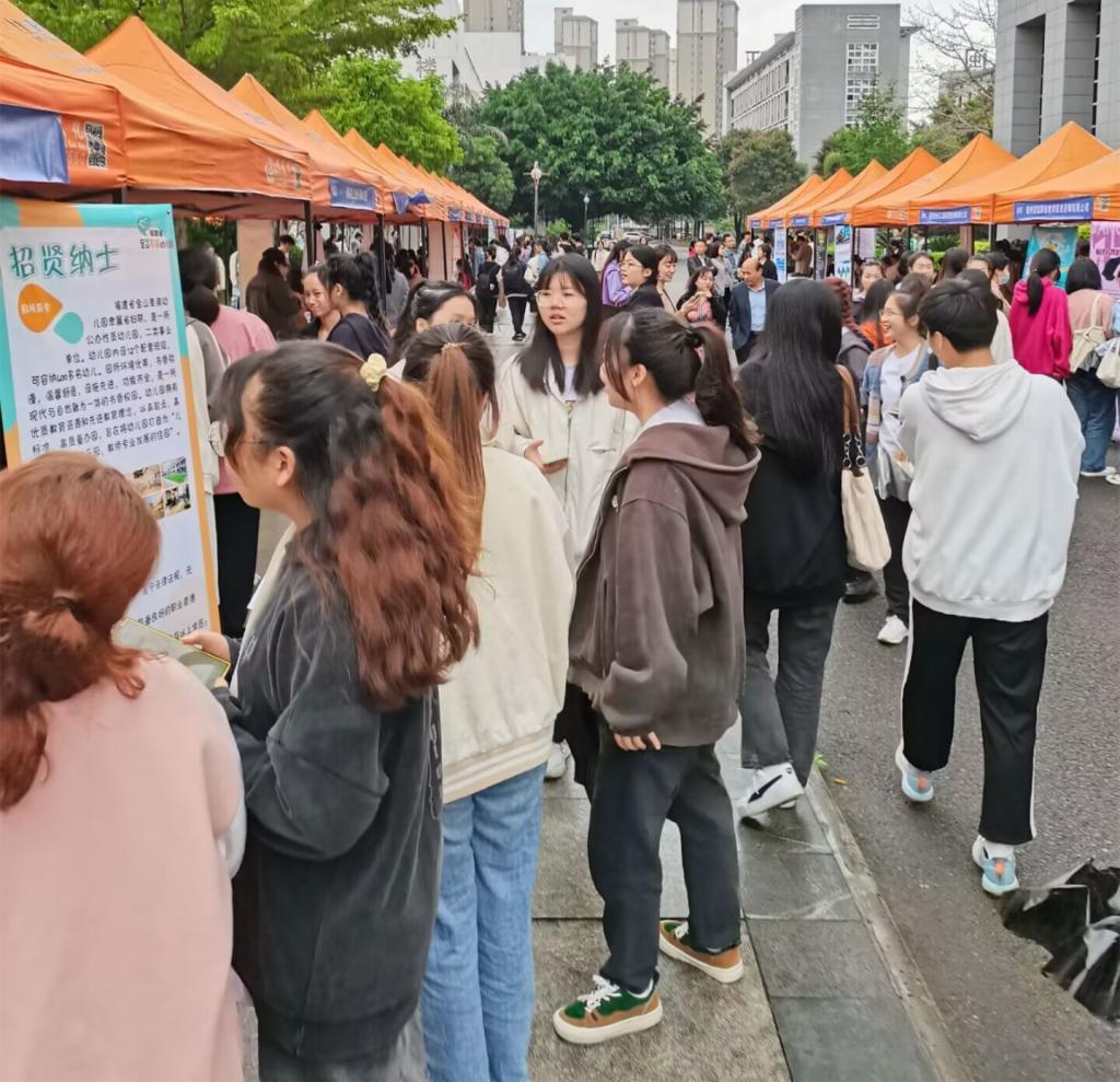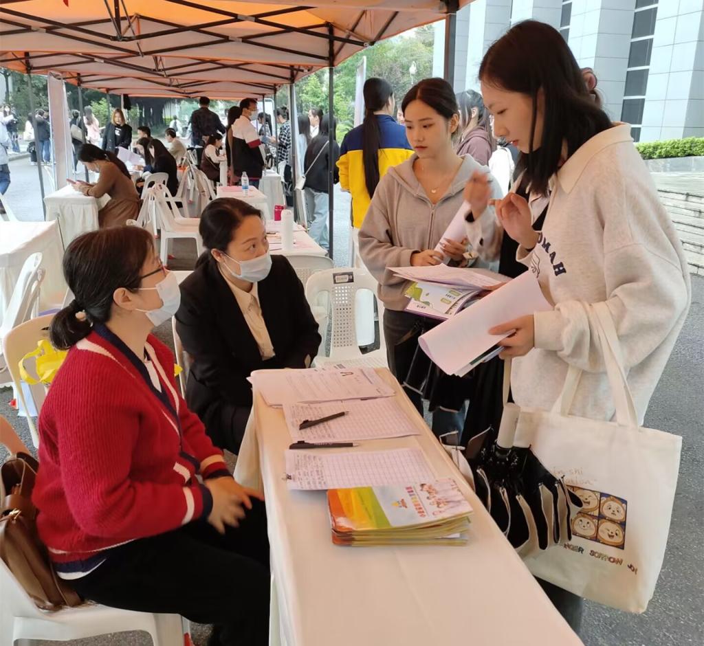 招聘会现场人头攒动,热情高涨。毕业生们带着精心制作的简历积极寻找心仪岗位,不少非毕业班学生也到场了解当前就业趋势及职业发展前景,还有就业指导课教师带着班级学生进行现场实战。现场还安排了专业人士为同学们提供政策咨询,为处在就业迷茫期的学生答疑解惑。