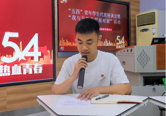 座谈会上,师生共同观看了《弘扬“五四”精神,传承青春之志》微视频。学生处副处长杨威涛带来题为《坚持“两个结合”传承中华传统美德——以“仁爱”原则为例》的团课。交流中,与会学生代表结合自身学习工作和社会实践经历分享了践行“五四”精神的心得体会。洪书源结合自身工作经历为同学们答疑解惑,并从五四精神的产生、内涵以及青年如何践行“五四”精神三方面进行点评,整场座谈会气氛热烈、轻松有序。