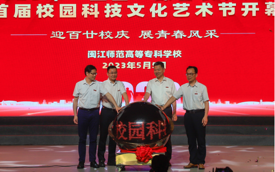 活动分两个阶段进行。第一阶段首届校园科技文化艺术节开幕式在观看“五四”青年节主题微视频中展开,微视频回顾了共青团历经百年的奋斗历程,感受到不同时代中国青年敢于担当、勇立潮头的精神风貌。校繁星合唱团合唱《有我》,以悠扬的旋律,传递祝福也传递希望,荡漾在中国梦的青春婀娜里。校领导陈荣生、谢敏峰、陈强、刘翔炜共同按动启动球后,我校首届校园科技文化艺术节正式开幕。