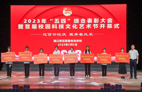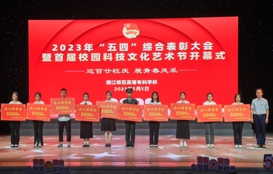 新思想引领新征程,新青年勇担新使命。为深入学习贯彻党的二十大精神,进一步弘扬“五四”精神、凝聚人心、鼓舞士气,团结凝聚全校青年学生力量,表彰优秀集体及个人,5月5日下午,我校在旗山校区学术报告厅隆重举行了“五四”综合表彰大会暨首届校园科技文化艺术节开幕式。校党委书记陈荣生,副校长谢敏峰、副校长陈强、副校长刘翔炜,相关部门负责人,各二级学院党组织书记、副书记、团委书记,以及受表彰的青年学生以及团员青年代表近800余人现场参加了活动。其他师生在线同步收看了表彰大会和开幕式。