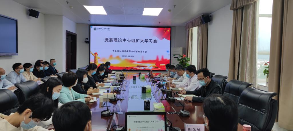 5月12日,我校召开党委理论学习中心组学习扩大会,传达学习习近平总书记给中国农业大学科技小院学生回信、学习《闽山闽水物华新》下中的“振兴闽剧,有好戏”、安全保密风险隐患等内容,各处室、院部负责人及二级党组织书记列席参加会议。会议由党委书记陈荣生主持。