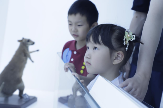 孩子们在志愿者的带领下参观生物标本馆