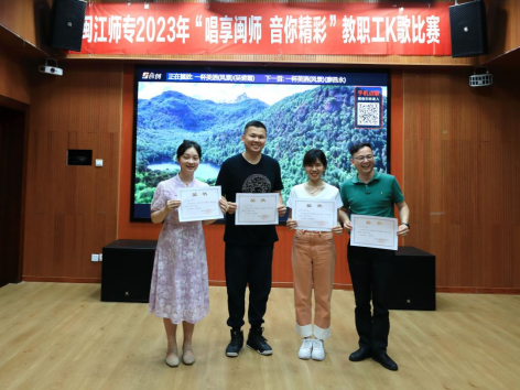 为丰富我校教职工业余文化生活,展示教职工风采,6月7日下午,校工会在旗山校区综合楼11层“教工之家”音乐会客厅举办“唱享闽师,音你精彩”教职工K歌比赛。本次比赛由学前教育学院陈鹤主持,艺术学院徐丽红、王刚、赵昊、黄晓琳,学前教育学院王海波担任评委。共有来自各二级工会、工会小组推荐的22位选手参赛。