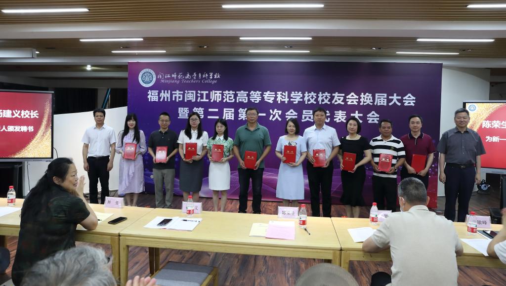 岁月不居,时节如流,闽师情怀,一脉相承。为进一步凝聚校友力量,汇集校友资源,促进校友与学校共同发展。6月10日上午,福州市闽江师范高等专科学校校友会换届大会暨第二届第一次会员代表大会在闽江师专附属实验小学三层鳌峰书院隆重举行。福州市民政局社会组织管理和行政审批处处长邹坚民、福州市教育局高等教育与对外合作处处长陈硕、闽江师专党委书记陈荣生、校长杨建义、原校长林贤、党委副书记林旻、副校长谢敏峰、纪委书记陈群、副校长陈强、副校长刘翔炜、原副校长张昌勋、原副校长黄耀荣、原福州工业学校校长高汝霖;第一届校友会会长俞黄榕、黄玲等理事会成员,校友会代表以及闽江师专师生代表等应邀出席活动。