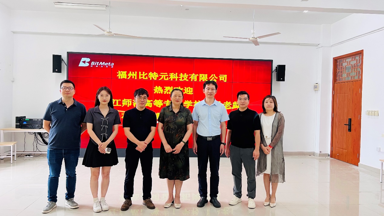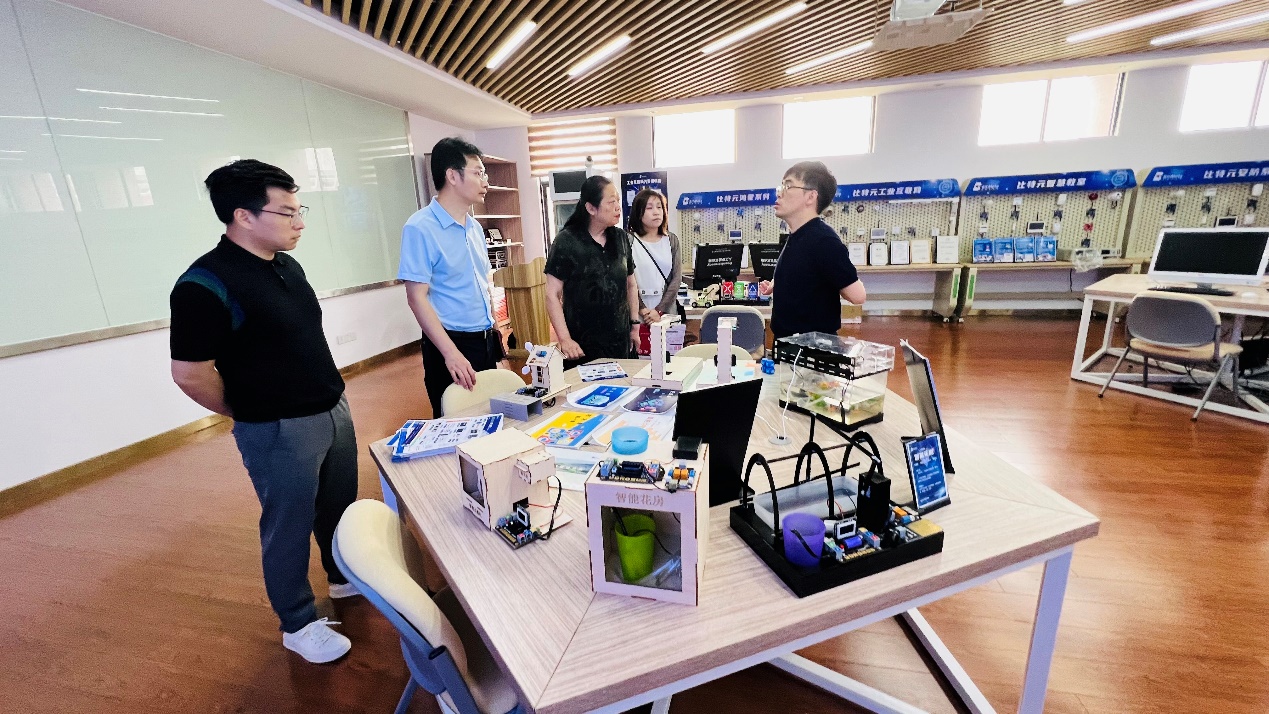 6月15日,调研组一行来到福州比特元科技有限公司,总经理罗成立对林旻一行的到访表示热烈欢迎,他介绍了公司当前的发展情况,展示了元宇宙、数字孪生,文创科技产品,以及中小学人工智能教育相关产品。在随后的座谈会上,林旻充分肯定了公司在中小学科创教育方面所做的调研以及课程体系研究成果,她表示,此次行动为学院专业建设提供了新的思路,希望双方在实训室建设、课程学分银行有更深入的合作,共同为学生搭建优质的实习和就业平台,助推毕业生更充分、更高质量就业。