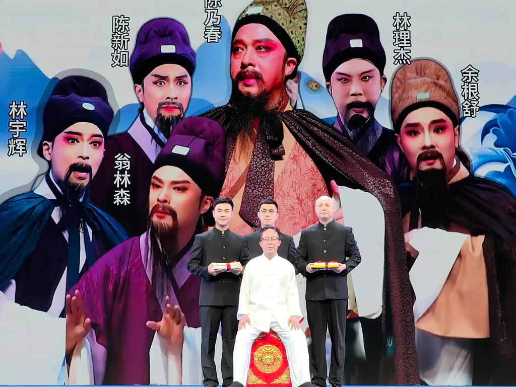 一个云手,划出励志梦想;几步圆场,走出芳华之路。在文艺汇演环节,非遗名师陈乃春与林理杰、翁林森等5位徒弟共同表演了传统闽剧《红裙记》选段“山长水远”;陈洪翔与杨帅等师徒表演《双蝶扇》选段“离卿”;林梦萍与吴立敏、张林娜等师徒4人一同合唱《红裙记》选段“追夫”。师徒同台演绎,台上配合默契,台下掌声连连。现场观众纷纷点头称赞,闽剧后继有人,未来可期。