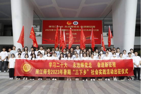 6月28日下午,我校2023年大学生暑期社会实践暨青年红色筑梦之旅出征仪式在旗山校区小学教育公共实训基地5楼报告厅举行。校党委副书记林旻,校团委相关人员,各二级学院团委书记及校级重点团队的指导教师和学生志愿者代表近100人参加仪式。