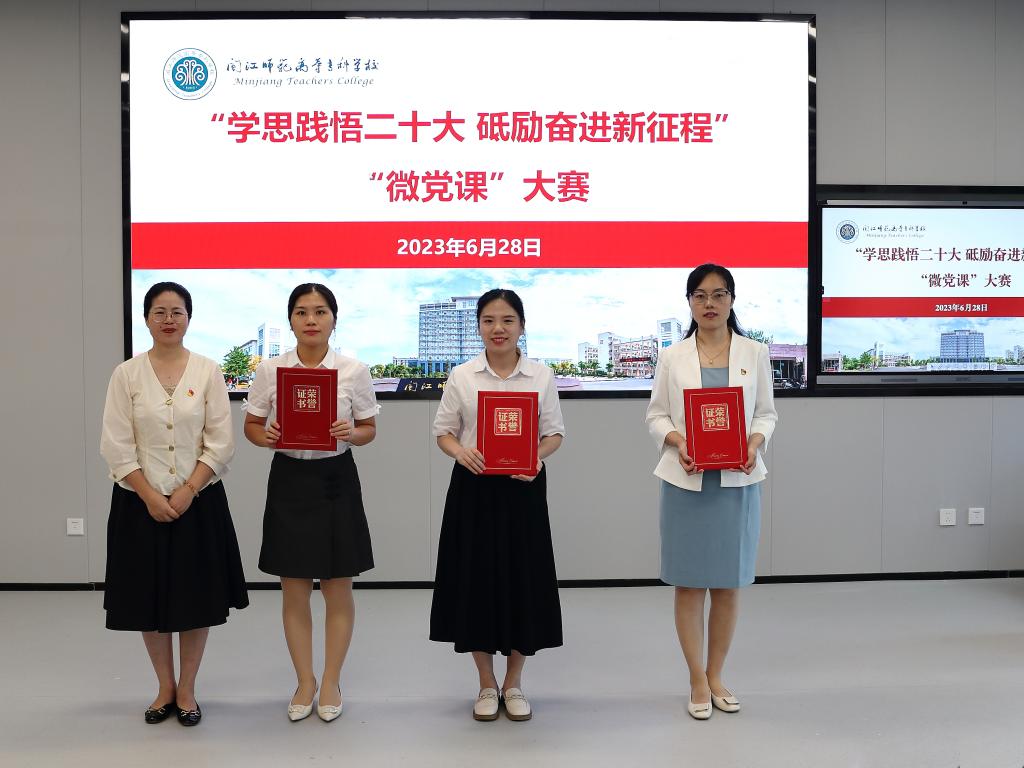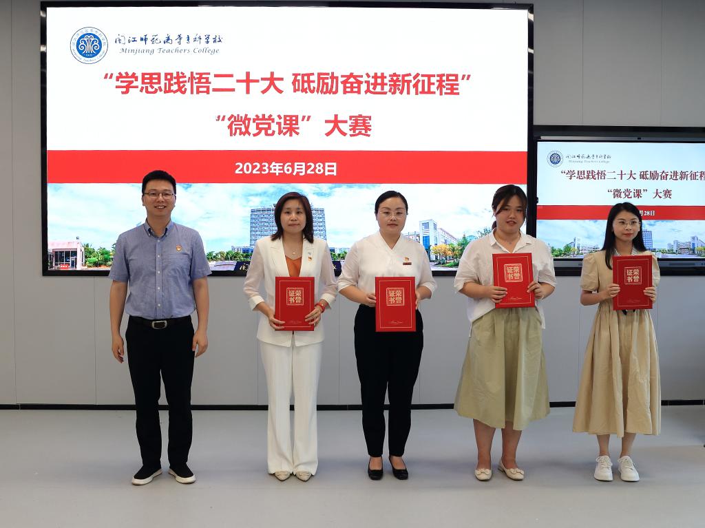 为深入学习贯彻党的二十大精神,先行融入学习贯彻习近平新时代中国特色社会主义思想主题教育,引导广大党员干部在以学铸魂、以学增智、以学正风、以学促干上下功夫见实效。6月28日,我校“学思践悟二十大 砥励奋进新征程”“微党课”大赛在旗山校区举行。校党委副书记林旻出席活动并为获得一等奖的选手颁奖。基层党委(总支、直属支部)书记、委员,党支部书记、委员现场观看了本次比赛。