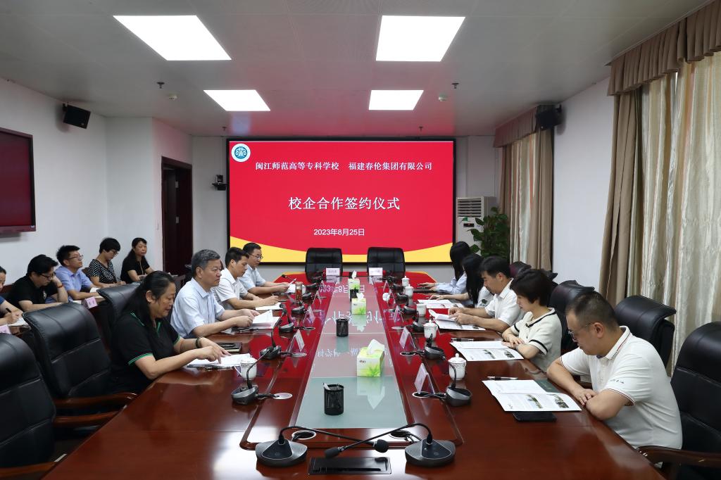 8月25日上午,我校与福建春伦集团有限公司在旗山校区举行校企合作签约仪式。校党委书记陈荣生、校长杨建义、党委副书记林旻、副校长谢敏峰,福建春伦集团党委书记、董事长傅天龙、副总裁傅晓萍以及双方相关部门(学院)负责人出席签约仪式。