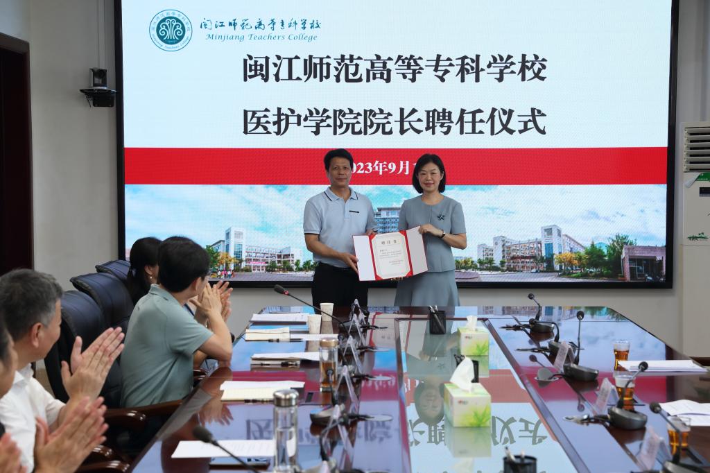 9月18日下午,我校在旗山校区综合行政楼第一会议室举行医护学院院长聘任仪式,福建医科大学护理学院成人护理学系主任庄嘉元教授正式受聘为医护学院院长(挂职)。福建医科大学党委常委、副校长、护理学院院长李红莅临现场,我校党委书记陈荣生、校长杨建义、校党委副书记林旻、副校长刘翔炜以及有关部门负责人、医护学院班子成员参加聘任仪式。仪式由刘翔炜主持。