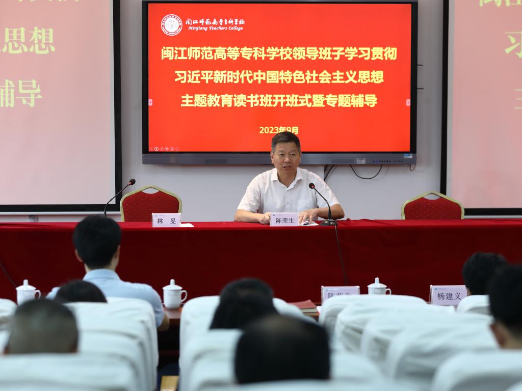9月27日,闽江师范高等专科学校领导班子学习贯彻习近平新时代中国特色社会主义思想主题教育读书班开班。党委书记陈荣生作开班式动员讲话,全体校领导、各部门负责人、学院党政主要领导、附属单位主要领导参加会议。会议由党委副书记林旻主持。市委主题教育办联络小组二组副组长林宇捷莅会指导。