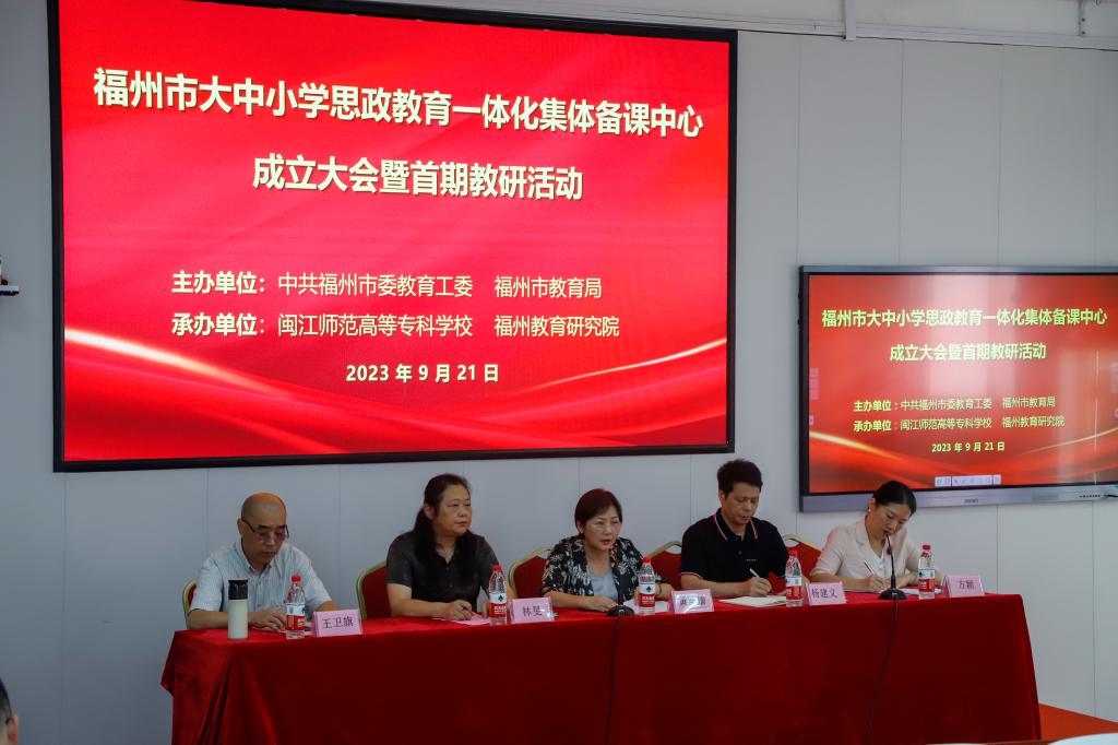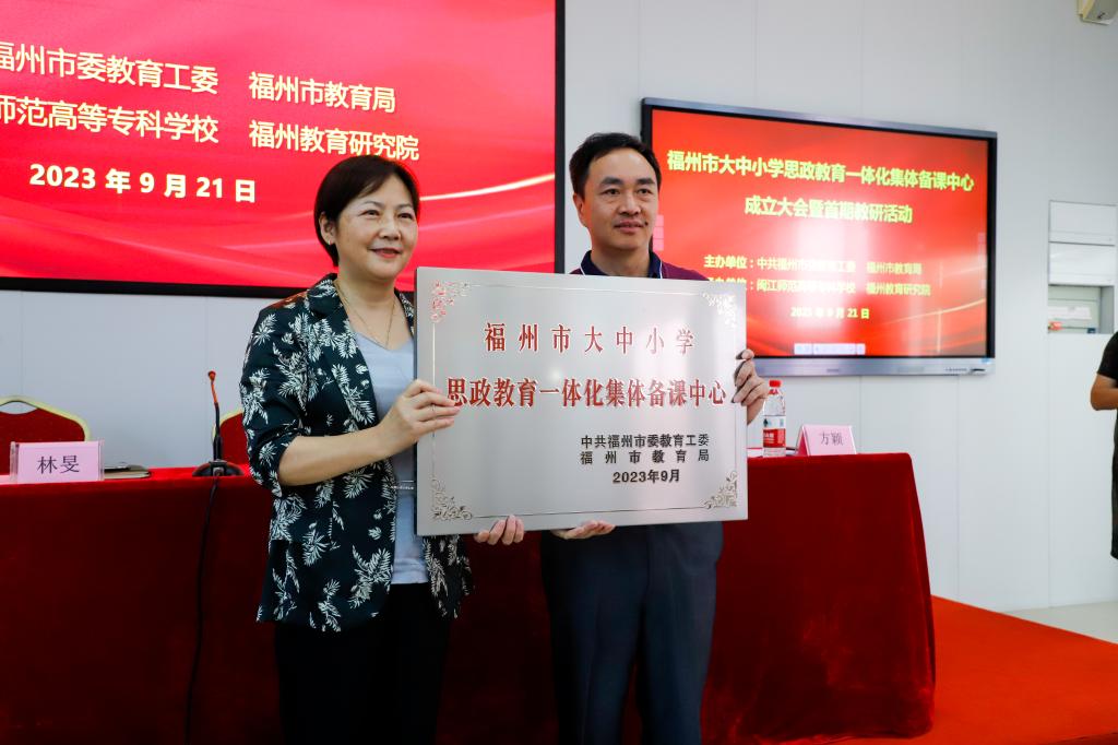 成立大会上,王卫旗宣读《中共福州市委教育工委 福州市教育局关于成立福州市大中小学思政教育一体化集体备课中心的通知》,黄坚瑜为集备中心授牌。