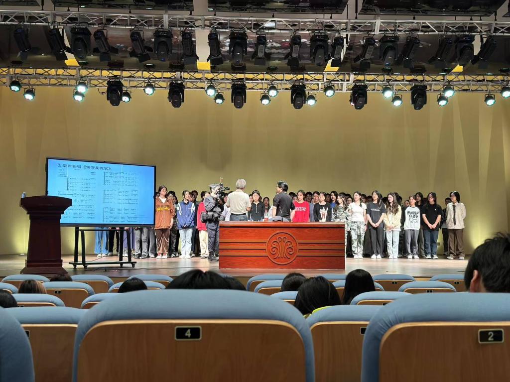 章绍同讲述了作品的曲式结构,旋律特点、节奏特点、音乐风格以及作品从单声部旋律到二声部童声合唱版到混声四部合唱的写作思路与结构发展等作曲技法。讲座上,艺术学院繁星合唱团及全体师生在现场演唱了混声合唱版《侯官是我家》,向作曲家汇报学唱及传唱作品的成果,同学们的演唱得到章绍同的高度评价,对合唱的声音、声部的融合、和声的饱满给与了充分的肯定。