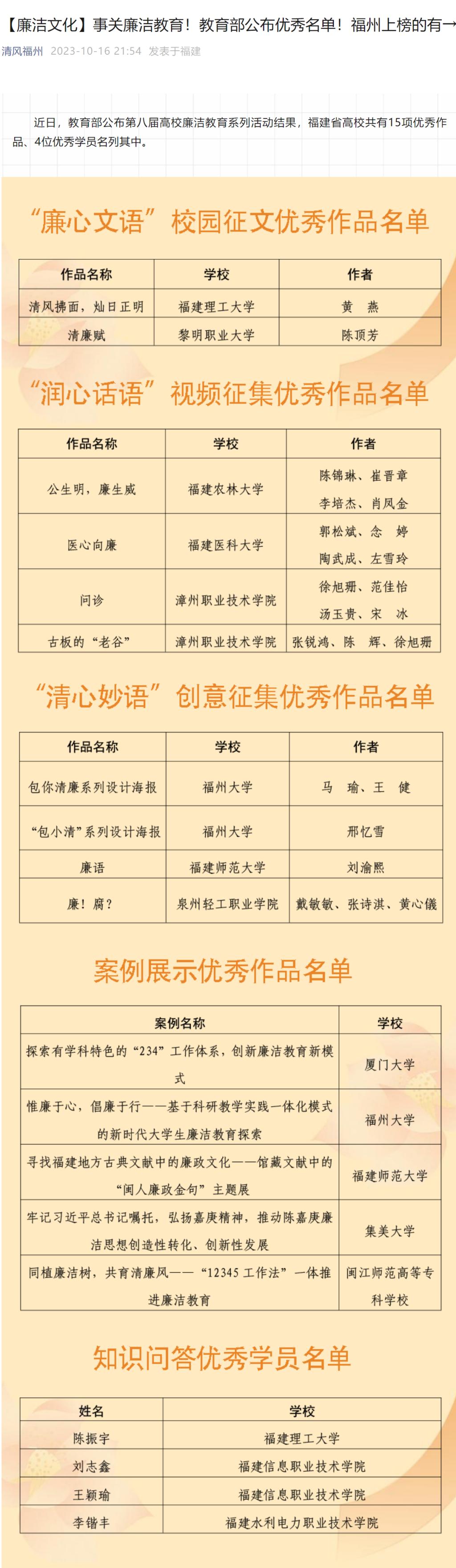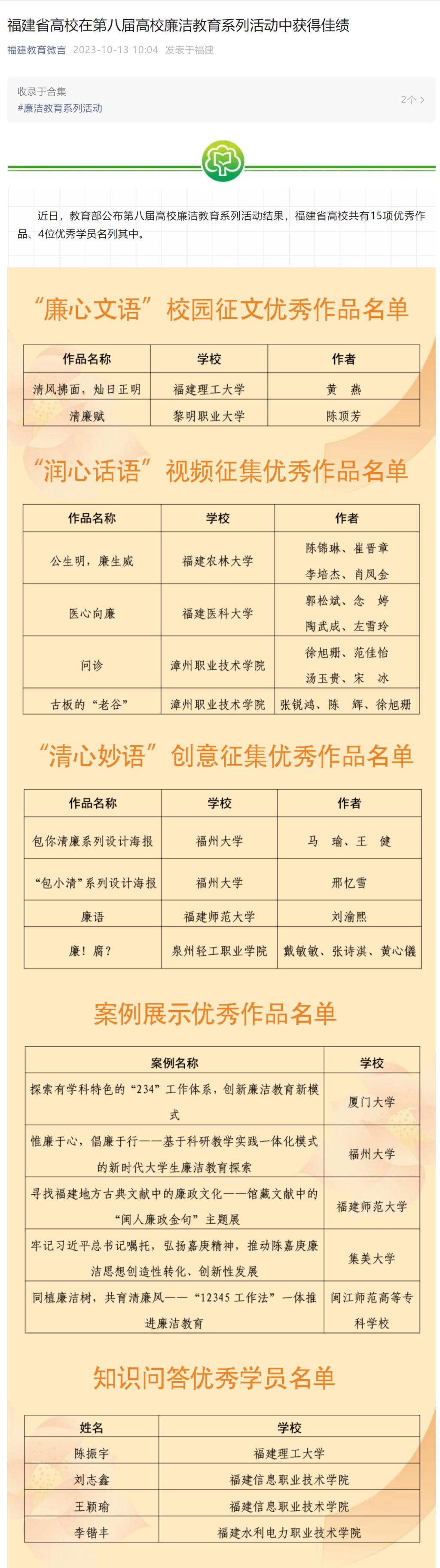 福建教育微言和清风福州微信公众号等媒体也对此进行了报道。