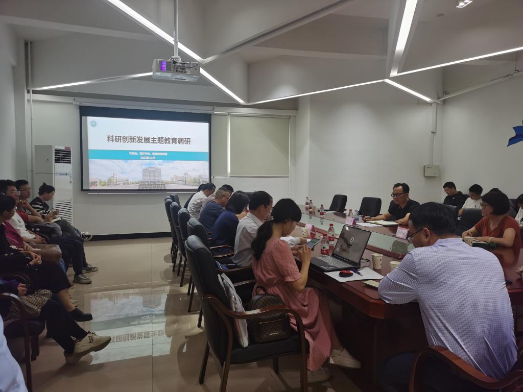 科研处向二级学院介绍了学校整体科研项目、技术服务、科研成果转化的工作情况,对一些存在的难题进行了回应,并就相关科研政策、制度进行了解读。