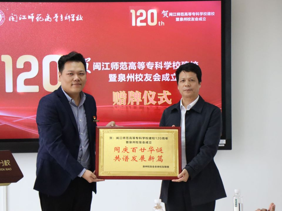 会议期间,校友代表给母校赠送了120周年校庆牌匾,全体与会人员进行合影留念。