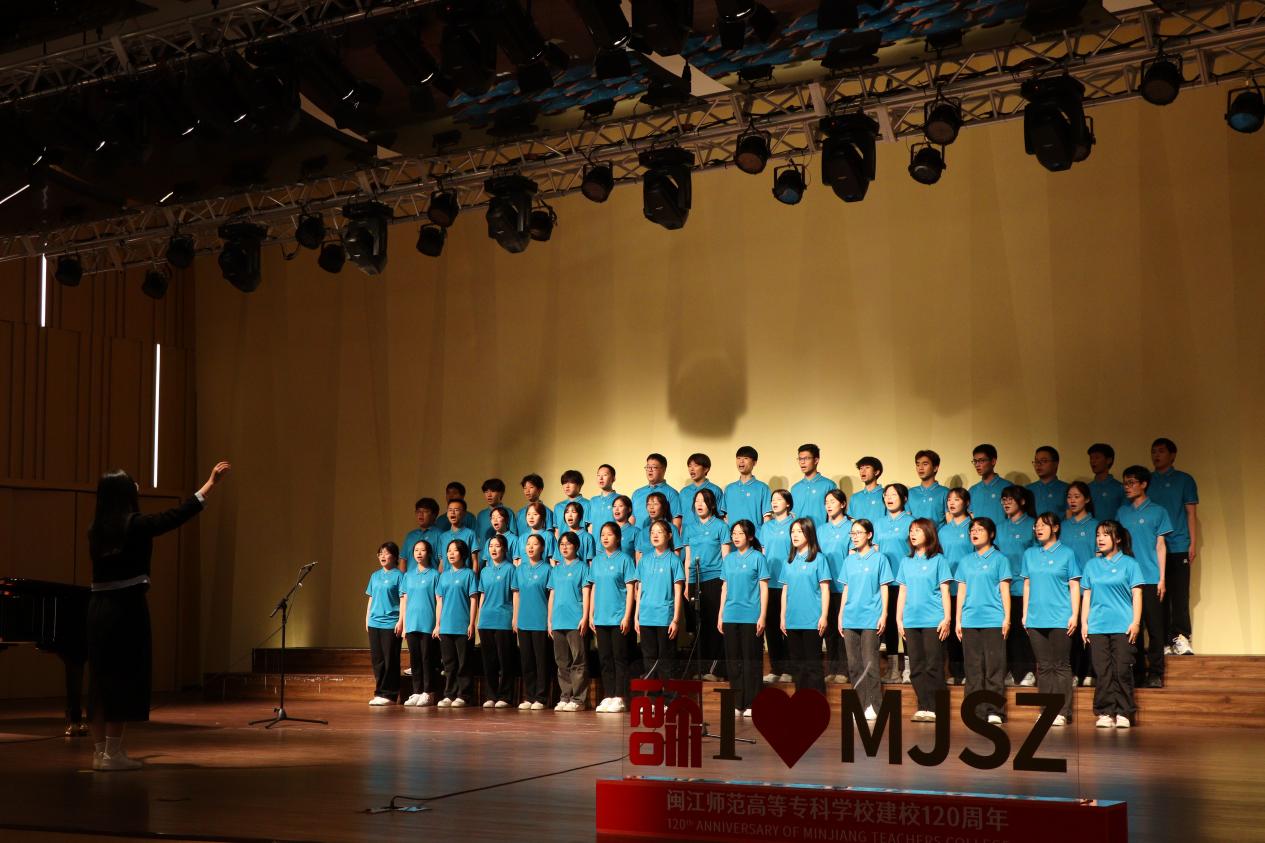 活动伊始,附属实验小学小繁星合唱团带来的表演曲目《茉莉花》《爱的传递》,唱响开场号角。比赛现场,来自9个二级学院的合唱队紧扣主题,他们演唱必选曲目《走进闽江师专》和一首自选曲目“《灯火里的中国》《瑶山夜歌》《如愿》……”,舞台上大家融合专业特色精心设计,为观众献上一场视听盛宴,淋漓尽致地展现出闽师学子们的昂扬精神面貌。