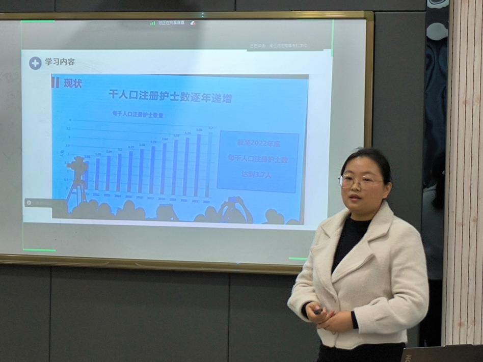 陈苏莲分享了她在近日参加的中华护理学会全国护理职业教育学术交流会议上的所见、所闻、所思,并表示在后续的工作中将积极思考护理专业人才的培养、参与学院产教融合项目,将所学应用到日常的教科研工作中。
