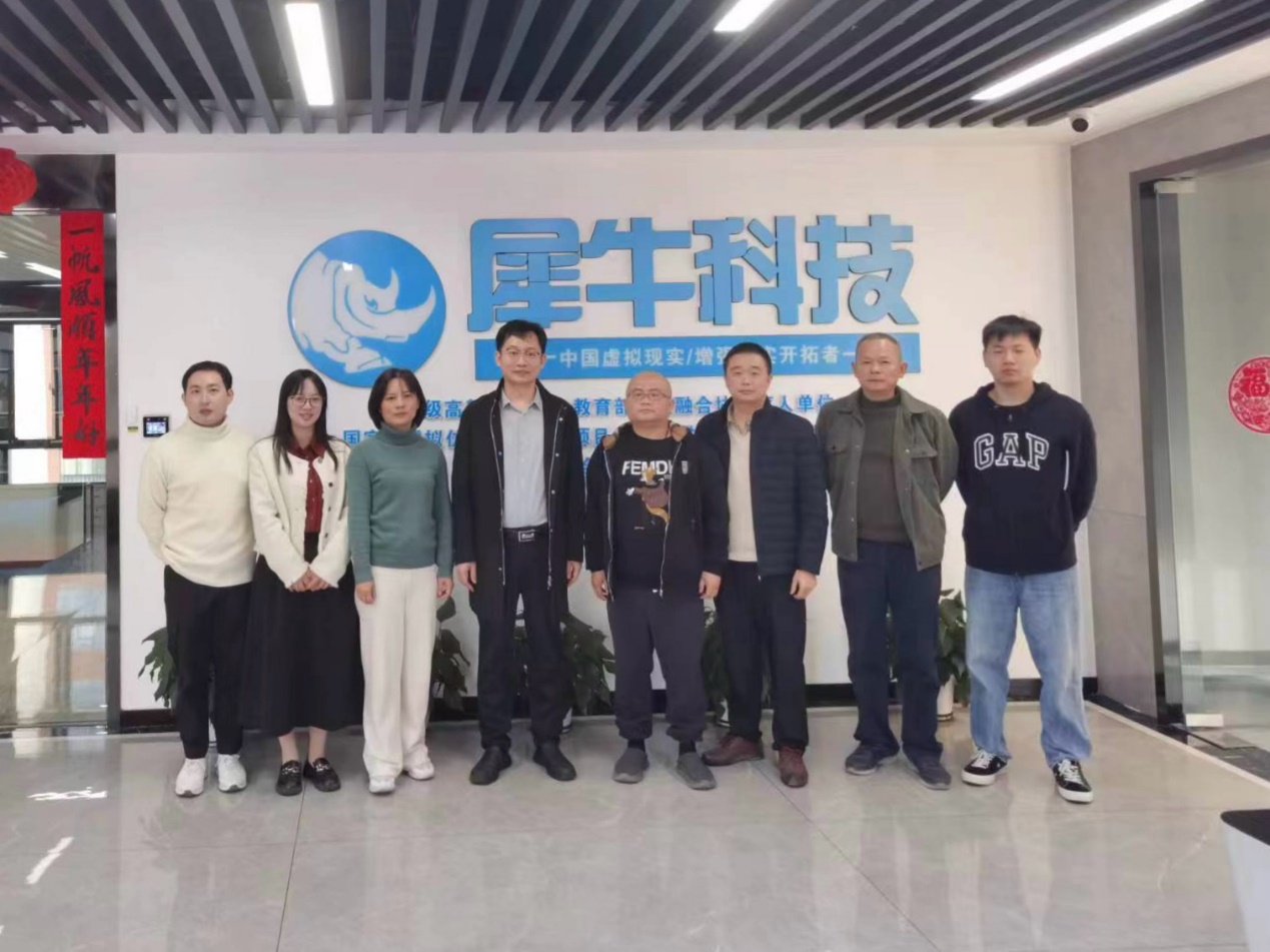 在犀牛科技有限公司,总经理刘向群介绍了公司的发展情况、组织架构、业务内容、虚拟仿真项目建设成功案例等情况。在交流座谈中,我校一行了解了企业在产教融合方面取得的成果,并就企业人才需求情况、校企资源共享、产教融合等方面工作进行交流,对校企合作进行虚拟仿真项目开发进行了讨论。