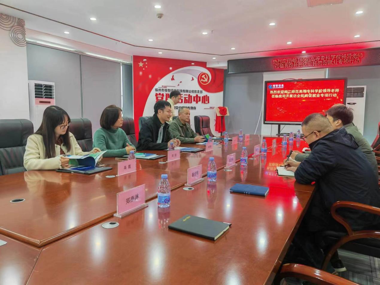 在榕智信息科技有限公司,总经理陈光辉热情接待了调研组,并介绍了公司概况、发展战略、用人需求等情况。双方就产学研合作、就业实习基地建设和毕业生招聘等方面做了深入沟通。