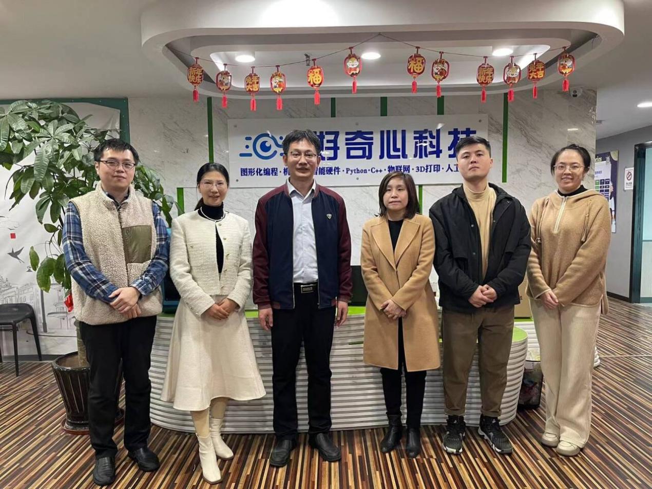 在调研过程中,公司总监黄进介绍了公司致力于为学校、科技馆等教育单位提供新技术教育支持,主要覆盖人工智能、物联网、芯片光刻与制造、新能源、新农业等科技领域。朱发财充分肯定了好奇心教育科技公司在青少年科技教育的成果,公司发展业务也很适合物联网应用技术与现代教育技术专业学生的专业,希望未来公司提供学生实习和就业的需求机会。