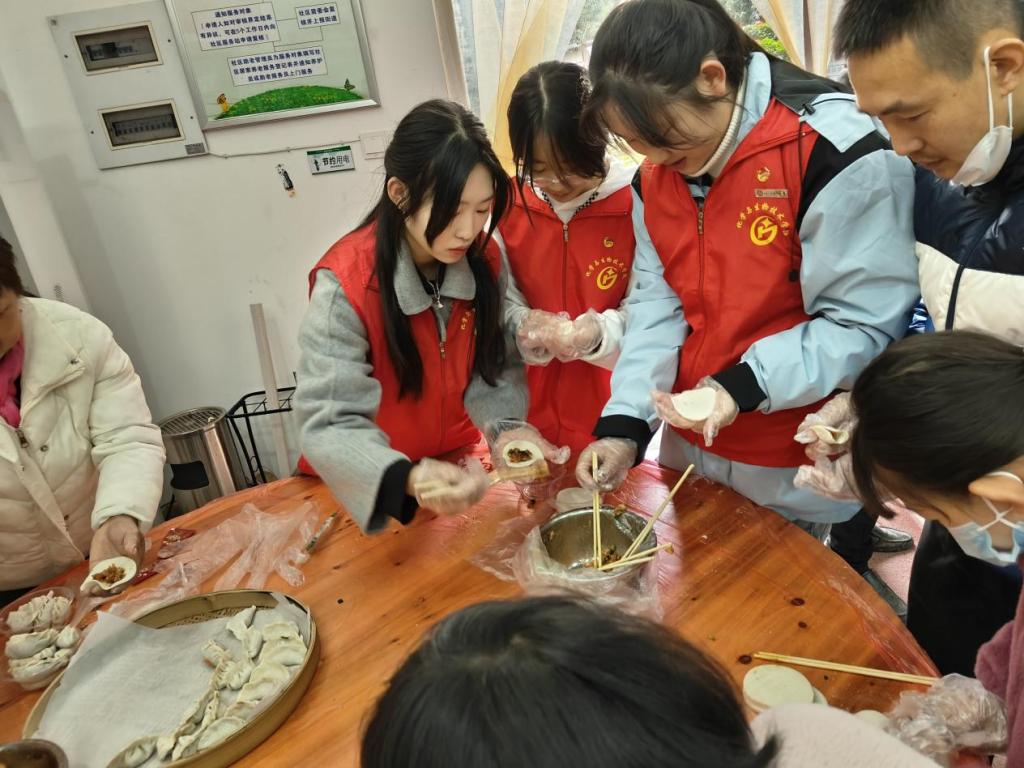 为丰富社区服务内涵,营造欢乐祥和的迎新春氛围,让居民在寒冬感受到关怀与温暖,1月25日,化学与生物技术学院党总支副书记张瑛、教师支部书记张文敏带领学生志愿者前往仓山镇联建社区参加“迎春饺子宴,墨香送祝福”“我们的节日·春节”主题活动。