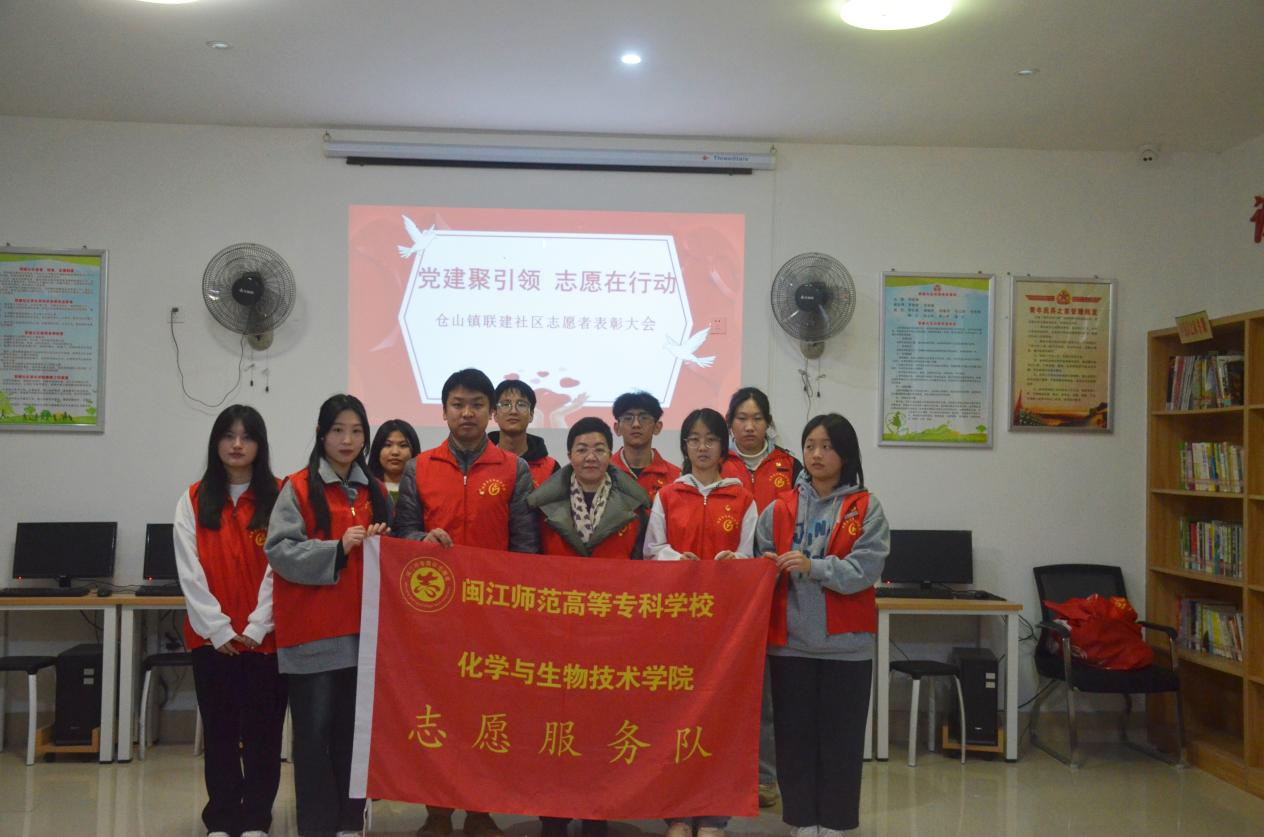 1月25日,化学与生物技术学院党总支副书记张瑛、教师支部书记张文敏和学生代表参加“党建引领,志愿在行动”仓山镇联建社区志愿者表彰大会。