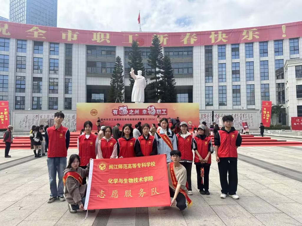 2月1日上午,福州市总工会2024公益行之喜乐荟活动在福州工人文化宫广场举办,化学与生物技术学院组织11名学生志愿者服务本次活动。