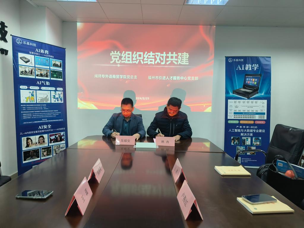 为建设基层服务型党组织,更好地实现“资源共享、优势互鉴、共同发展”的党建共建目标,3月4日,中共闽江师范高等专科学校外语商贸学院总支部委员会和中共福州市引进人才服务中心支部委员会在福州留创园举行了党建共建签约仪式。外语商贸学院党总支书记林冉和福州市引进人才服务中心党支部书记、主任吴福安在仪式上签署了党组织结对共建协议书。
