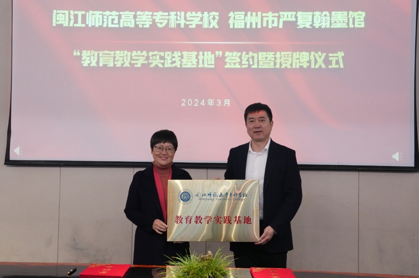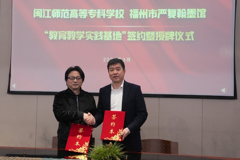 随后,艺术学院院长徐青与郑志宇签订共建合作协议,学院党委书记江柳青向福州市严复翰墨馆授牌。