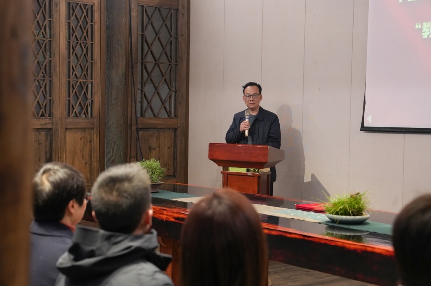 严复翰墨馆馆长郑志宇致欢迎词,他表示非常高兴能够与艺术学院建立合作关系,相信通过双方的共同努力,一定能够推动艺术教育与文化传承的深度融合,为培养更多优秀的艺术人才创造有利条件。