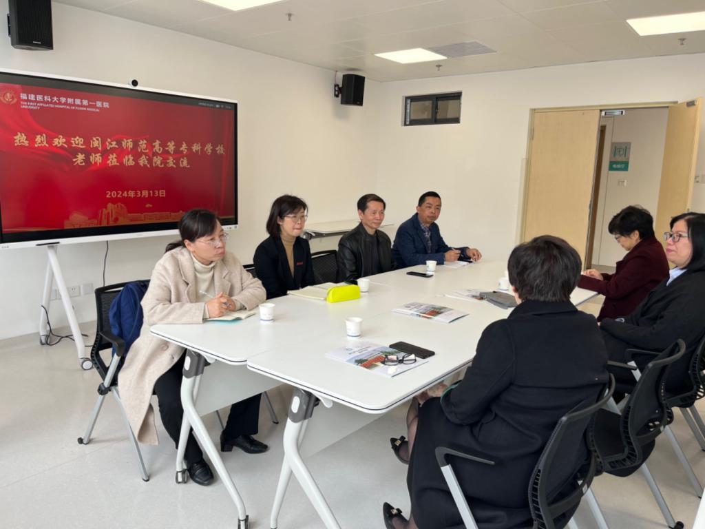 福建省立医院护理部主任金爽、福建医科大学附属第一医院护理部主任林蓉金都对庄嘉元一行的到来表示热烈欢迎,他们分别介绍了医院的建设情况和护理部工作的相关情况,热切期望学院推荐更多优秀学生来医院实习,携手开创校企合作、共赢发展的新局面。