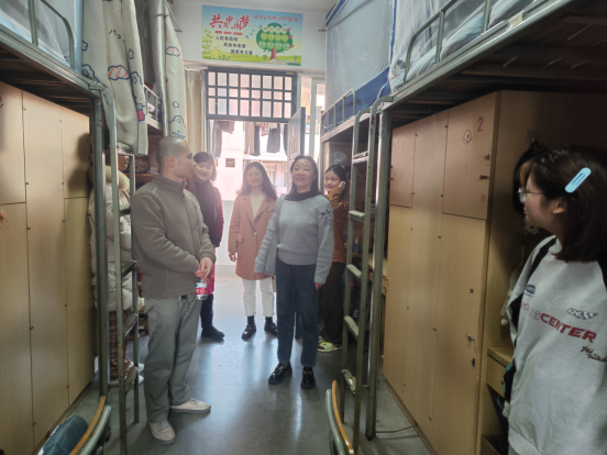 座谈会后,学院领导深入学生宿舍,实地查看学生的生活环境。在宿舍里,院领导亲切地与同学们交谈,了解她们的生活状态和精神面貌,同时对宿舍文化建设提出了意见,强调要创造一个温馨、和谐的生活氛围,为同学们的健康成长提供良好的环境保障。