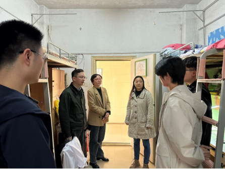 走访检查过程中,领导老师们一方面关心了解了同学们新学期的学习生活情况,并对宿舍内的用电安全、消防安全、卫生状况等方面进行了检查与指导,叮嘱同学们注意规范用电,维护宿舍卫生安全,养成良好的生活习惯,做好流行性疾病的预防。
