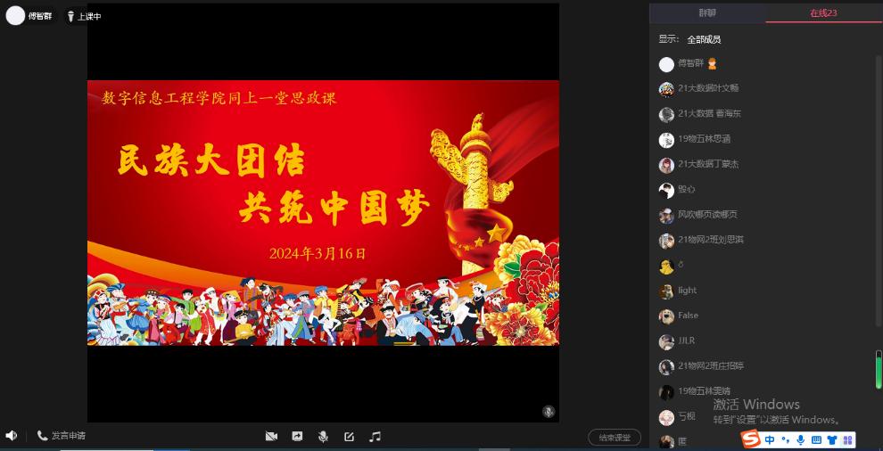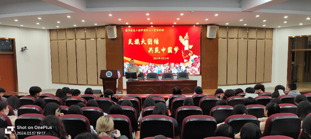 3月16日,数字信息工程学院以线上线下形式开展“民族大团结,共筑中国梦”民族团结教育专题思政课,全院1700多名学生参与活动。