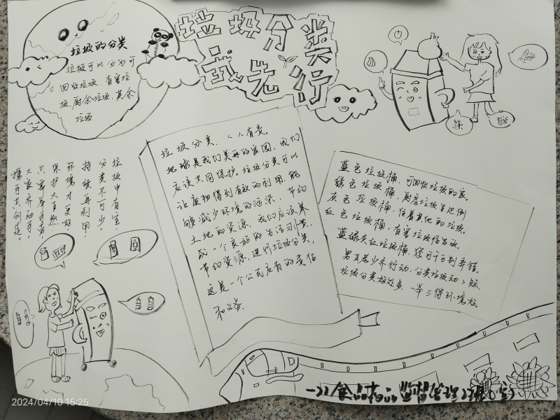 学院组织各个班级学生以绘画的形式宣传垃圾分类知识。通过海报、手抄报清晰展示垃圾分类方法,详细介绍垃圾处理流程、环保标志和标语,阐述垃圾分类的重要性。学生志愿者还走进社区、公园讲解垃圾分类有关知识,分发宣传资料,引导群众积极参与到垃圾分类的行动中来,保护生态环境。