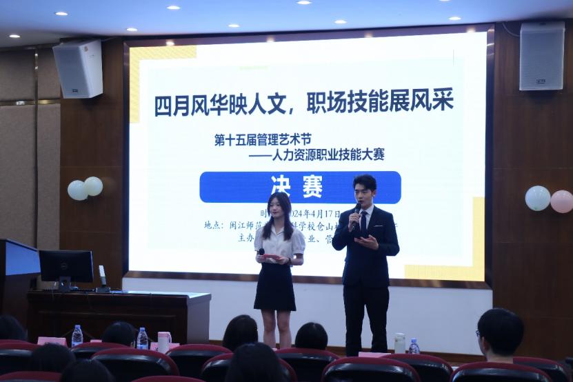 4月17日,人文与管理学院举行以“四月风华映人文,职场技能展风采”为主题的人力资源职业技能大赛。
